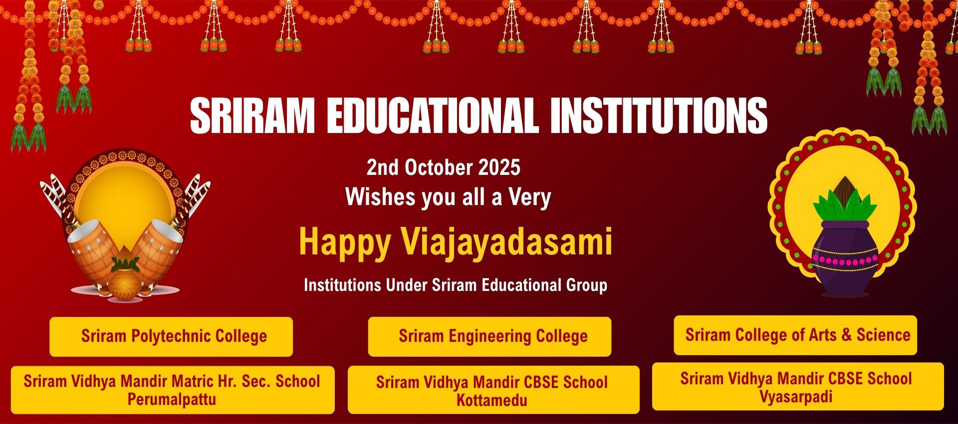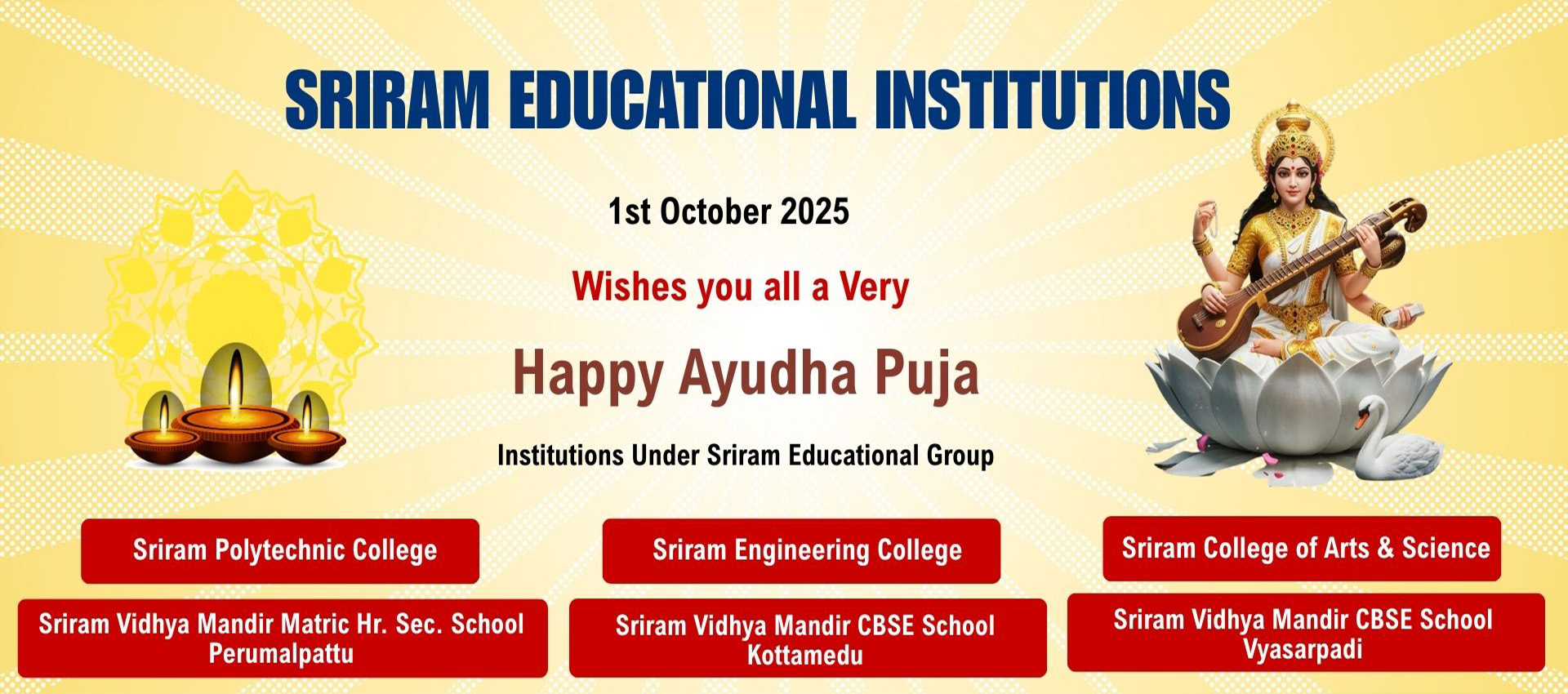 Sriram Educational Trust was established under the Deed of Declaration registered on 20.10.1983 as a PUBLIC CHARITABLE TRUST for the purpose of establishing educational institutions for the benefit of Telugu Linguistic Minorities living in the State of Tamil Nadu.
